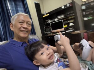 Simple joys and simple pleasure. PS5 bonding with grandson Matteo in my work place.